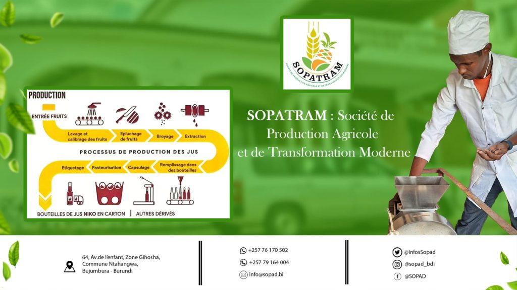 Du secteur informel au formel, de l’artisanal à l’industriel, l’unité de transformation – SOPATRAM, initiée par la Solidarité pour la Promotion d’une Agriculture Durable – SOPAD, est un exemple éloquent de progression. Soutenue par l’Organisation Néerlandaise de Développement SNV, la SOPAD a bénéficié du cofinancement du fonds PADANE, qui a octroyé une facilité d’acquisition d’un équipement moderne spécialisé pour la production du jus de Maracuja. Cette transition marque une étape significative dans la modernisation de l’activité, illustrant ainsi l’engagement en faveur d’une transformation durable et d’une croissance économique dans le secteur agricole.
